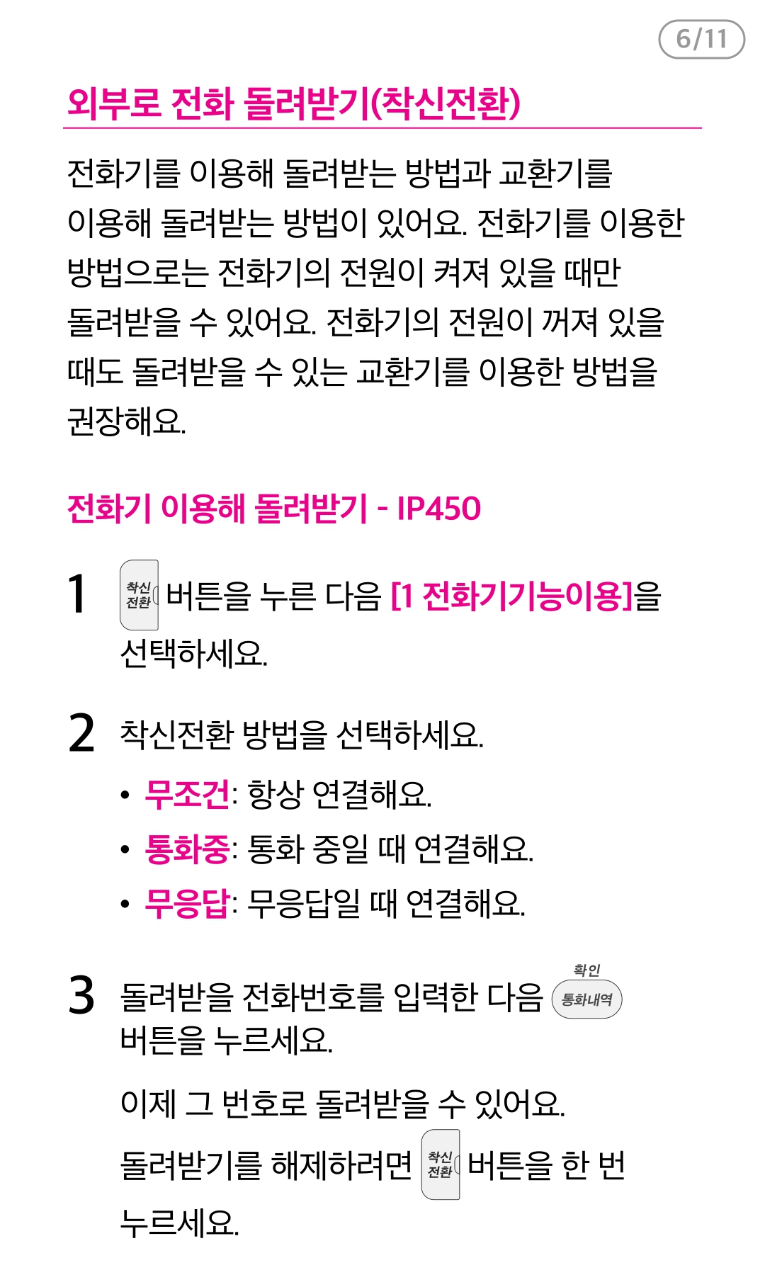 전화 번호키로 내선통화, 전화 돌려주기 등 사용법을 알고 싶어요