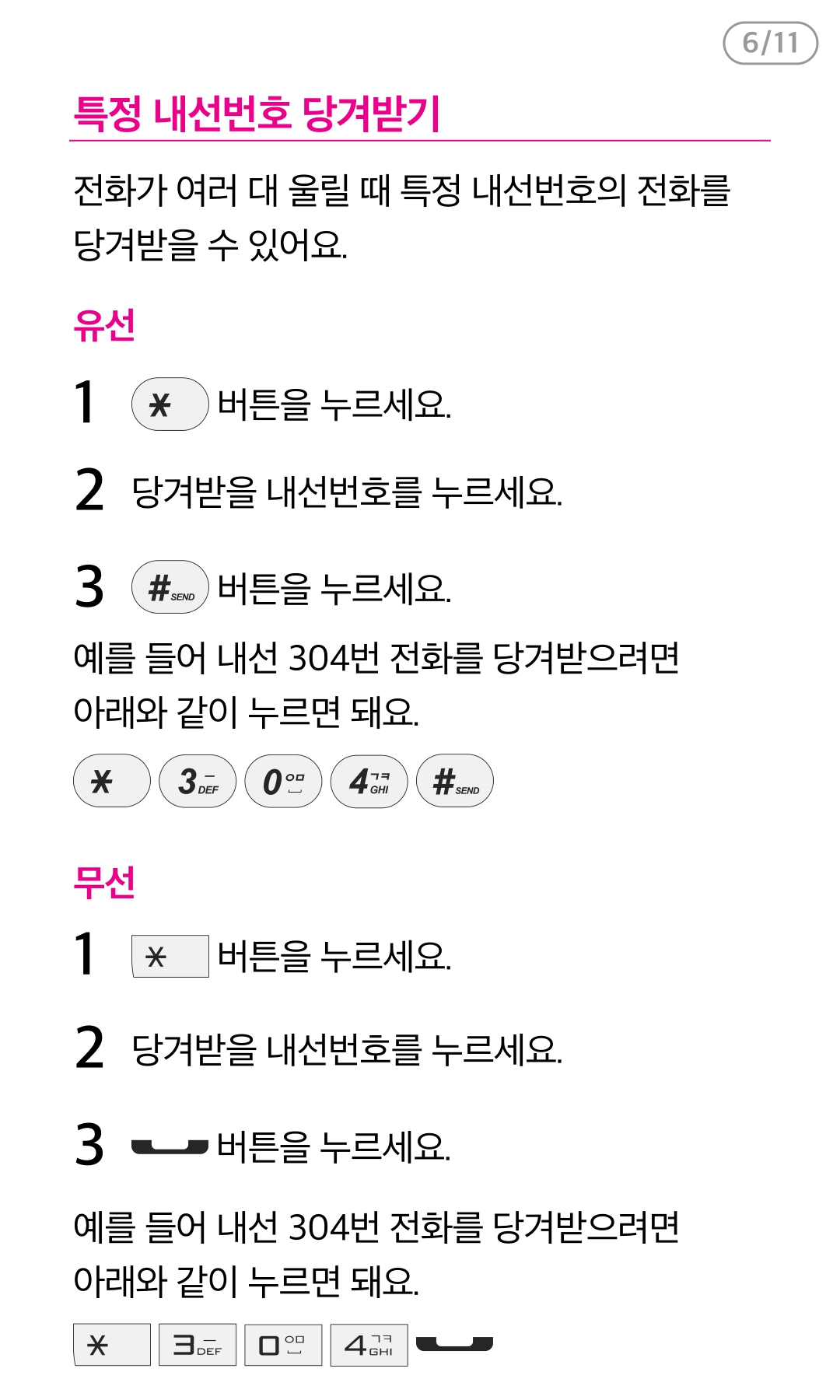 전화 당겨받기와 돌려받기를 설정을 하고 싶어요